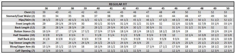 Suit Jackets Coat Size Chart